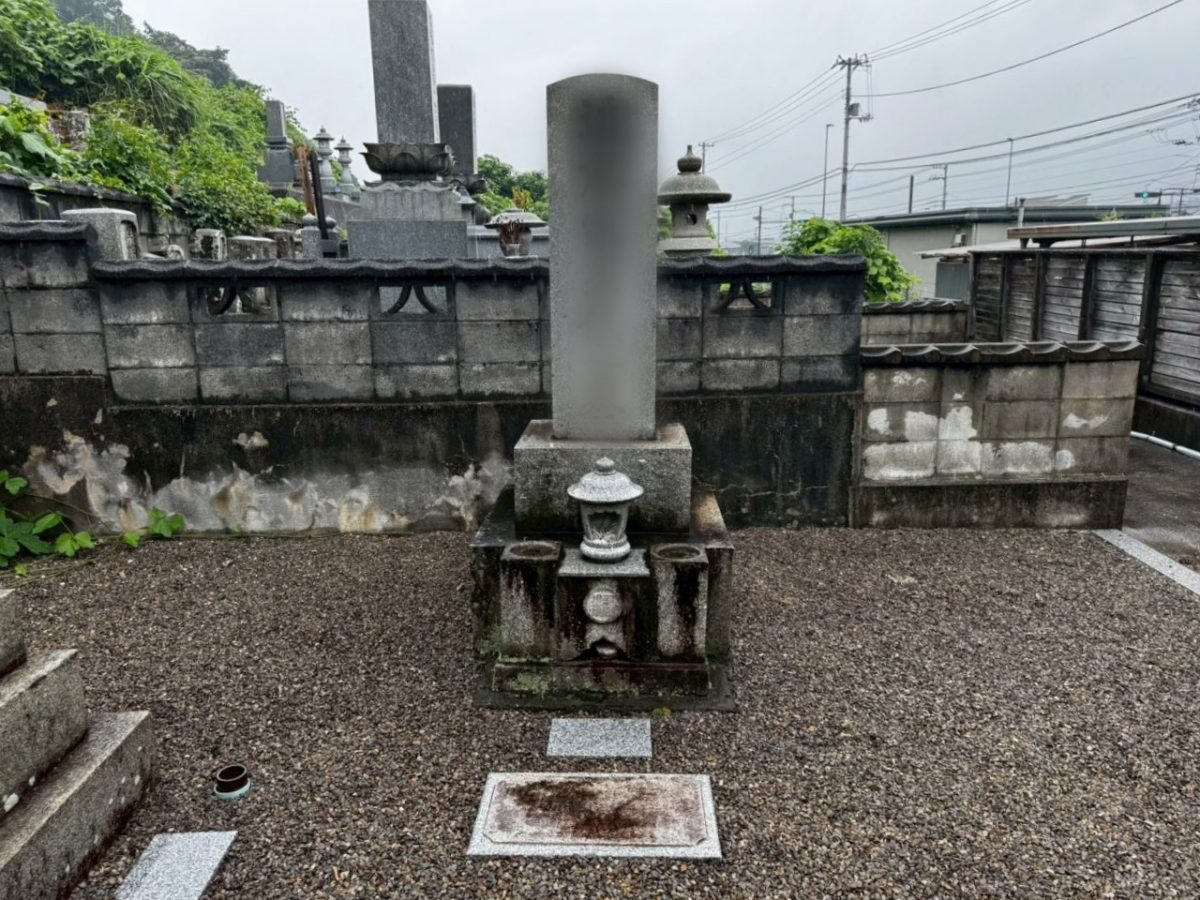 担当者からのメッセージ 新居浜市、岸の下ラント山墓地のお墓じまいです。 区画内の一基だけ撤去する工事です。 石材は吊り具と運搬車を使用して搬出。 納骨室を埋め戻した後、土間コンクリートを打設して工事完了です。 低予算、短日工事で施主様に大変喜んでいただきました。 <まとめ>①墓地:岸の下ラント山墓地②費用200,000円③工事期間:1日